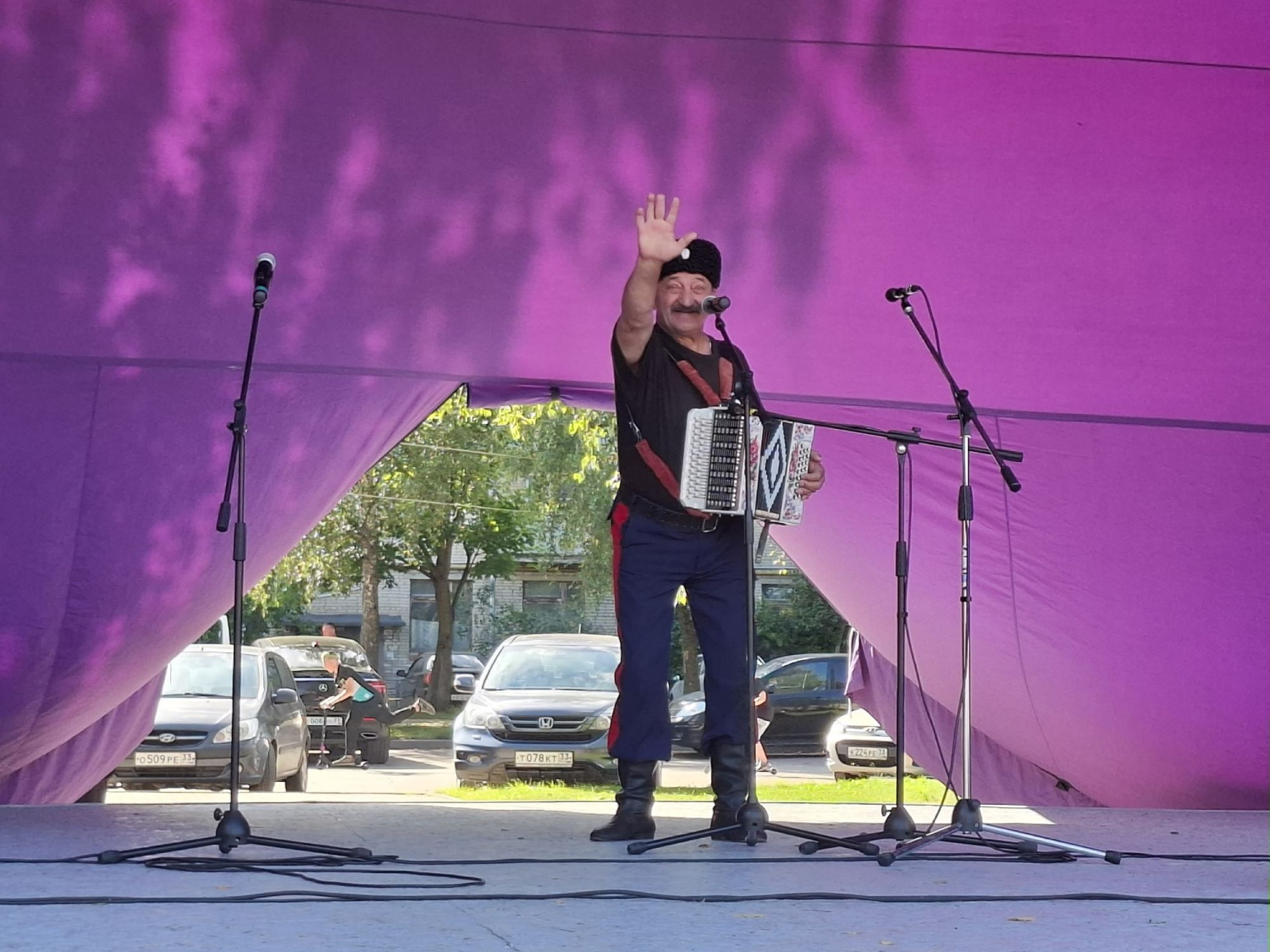 Впервые приехали на наш фестиваль артисты из Ставрова и покорили зрителей. Самая юная участница концерта Стефания Царевская задорно исполнила «Росинка - россиянка» и «Я красивая девчонка», а Алексей Мухин очаровал такими словами из песни: «Вы любите гармонь, дорогую певунью России, только кнопочки тронь, запоёт вмиг гармонь, как рукою болезни с вас смоет».
