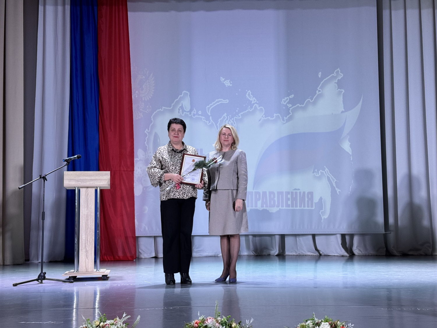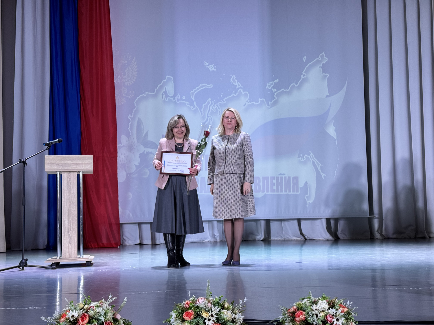 Татьяна Адулова также передала собравшимся поздравления от имени Губернатора Владимирской области Александра Авдеева и вручила Почетную грамоту Министерства внутренней политики Владимирской области Лилии Сулоевой, начальнику управления стратегической планирования, инвестиционной политики и экономического развития администрации городского округа Покров, а также Благодарность Министерства внутренней политики Владимирской области Елене Кулаковой, директору муниципального казенного учреждения города Покров «Центр муниципальных услуг».