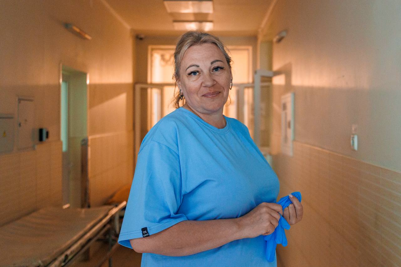 Моя первая работа была в кардиологическом отделении. В основном я занималась уборкой палат и уходом за лежачими больными. Поскольку это республиканская больница, там лечатся и военные, и гражданские. Уход требовался за всеми, и в кардиологии военных было не меньше, чем, например, в травматологии или нейрохирургии. Эмоционально было очень тяжело видеть бойцов, которым нельзя вставать. Были и случаи смерти. Однажды ночью у 42-летнего бойца случился обширный инфаркт, и утром его не стало. Когда мы работали в пищеблоке, приходилось чистить овощи, убирать и мыть помещение. В больнице огромное количество пациентов и персонала, всех нужно накормить. Понимаешь, что если ты не поможешь, люди будут есть, например, пустую капусту. Девочки из персонала не всегда успевают, и мы, волонтёры, помогаем им, как дома – всё моем, чистим картошку и многое другое. Это тоже очень важная работа. Нам также поручали отвозить пациентов на КТ и рентген, готовить их к операциям. Мы не медики, поэтому не можем проводить медицинские манипуляции. Но те, кто приезжает не в первый раз, как я летом, уже научились ставить мочеприемники и делать уколы, потому что людей действительно не хватает. В этот раз, во время моей смены, привезли мужчину с гвоздем в голове. Моей задачей было держать его голову, чтобы в бессознательном состоянии он случайно не повернул ее и гвоздь не вошел глубже. Перед операцией мы готовили его втроем: один держит, другой бреет голову, третий снимает одежду. Приходилось переносить пациентов на носилках только силами женщин. Там очень нужны руки, нужны люди, и всем очень рады. - Откуда приезжают волонтёры?