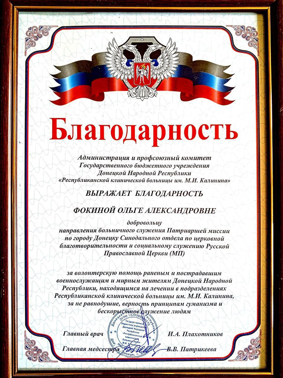 И вот, после долгих поисков, я наткнулась на интервью женщины, которая вернулась из подобной поездки. Она упомянула, что "заполнила заявление". Оказалось, что это была ссылка на анкету. Я перешла по ней и заполнила. Это был Синодальный отдел по церковной благотворительности и социальному служению Русской Православной Церкви. Один из проектов этого отдела - Патриаршая гуманитарная миссия, которая была учреждена решением Священного Синода Русской Православной Церкви в августе 2023 года с целью системного развития гуманитарной помощи пострадавшим мирным жителям на территории ДНР, ЛНР, Запорожской и Херсонской областей. После собеседования мне перезвонили, назначили срок, и в апреле прошлого года я отправилась в Донецк, в Республиканскую клиническую больницу имени Калинина. Это так называемое "больничное служение" от церкви. Больница многопрофильная, и мы, волонтёры, помогаем там как санитарки, работаем в пищеблоке и так далее.