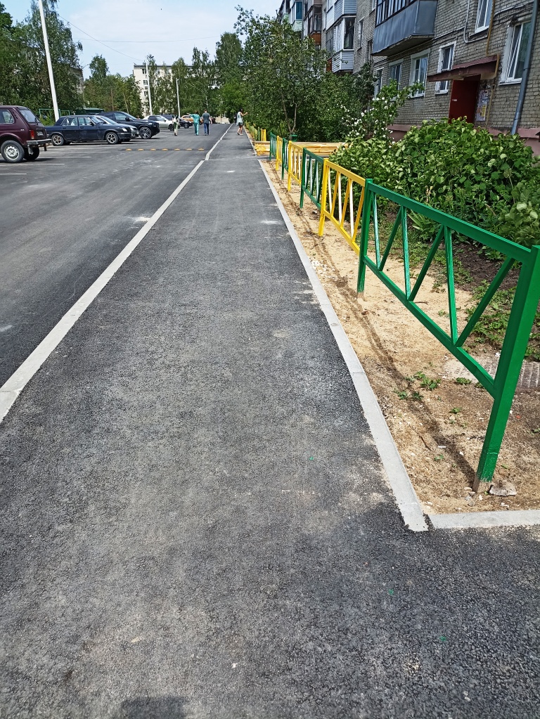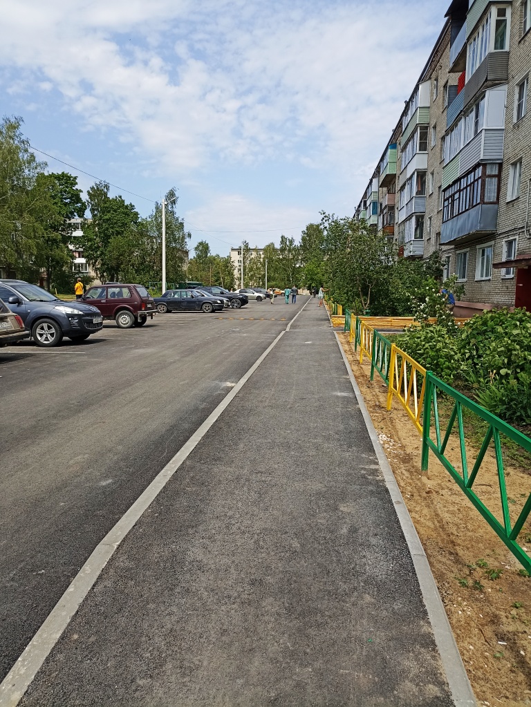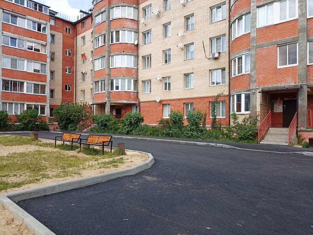 "Благодаря участию в программе, у дома N 40, отремонтировано более 900 кв. метров асфальтового покрытия, предстоят незначительные работы. Осталось установить урны, лавочки у подъездов, фонари. К работам подрядчик приступил в конце мая, работы будут завершены в течение ближайшей недели", - рассказала директор Центра развития и содержания города Петушки Елена Суворова.