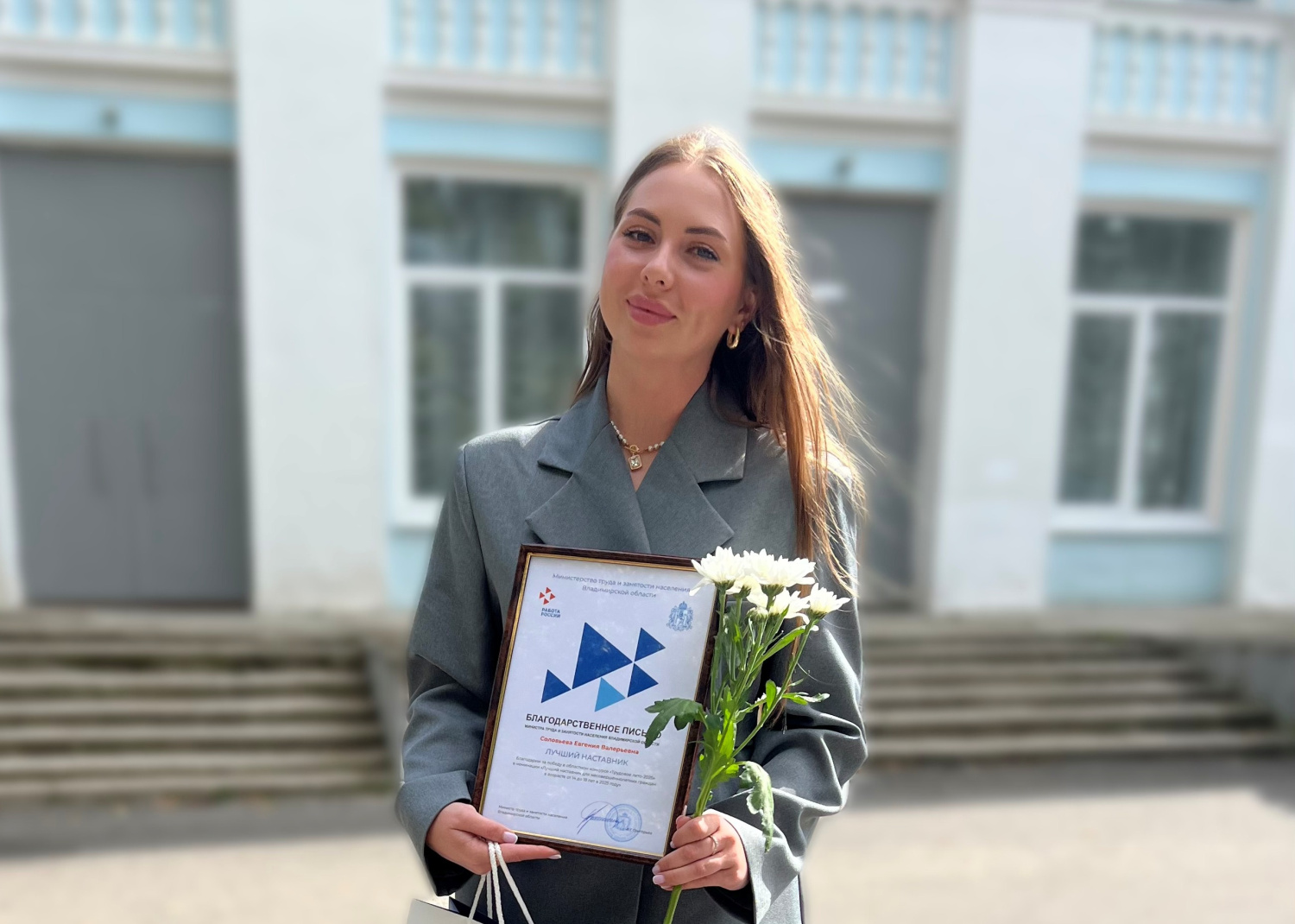 – С 8-го класса я поняла, кем хочу стать. Этот путь мне подсказала моя учительница русского языка и литературы Надежда Георгиевна Антонова, которая была и моим классным руководителем. Именно она, видя мои способности, часто брала меня на различные конкурсы и олимпиады, в том числе и на конкурсы чтецов. В старших классах я уже сама стала ведущей многих школьных мероприятий, что еще больше укрепило моё желание связать свою жизнь с преподаванием.