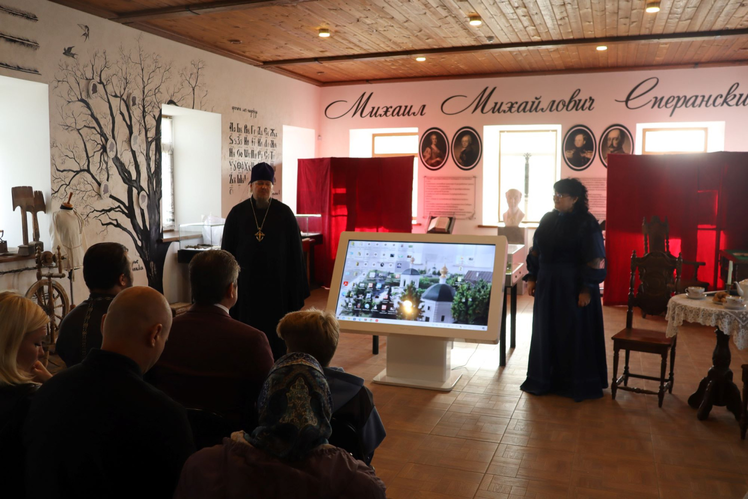 С напутствием к собравшимся обратился протоиерей Виктор Тарасов, Благочинный Собинского церковного округа. Настоятель храма в честь святителей Христовых Спиридона и Николая Чудотворцев Отец Алексей, объединившись в молитве со всеми присутствовавшими, исполнил «Вечную память» Михаилу Михайловичу Сперанскому, а затем вместе с другими жителями села стал участником театрализации о жизни выдающегося русского законотворца и реформатора, основанной на письмах М. М. Сперанского, воспоминаниях его дочери Елизаветы, а также мемуарах современников.