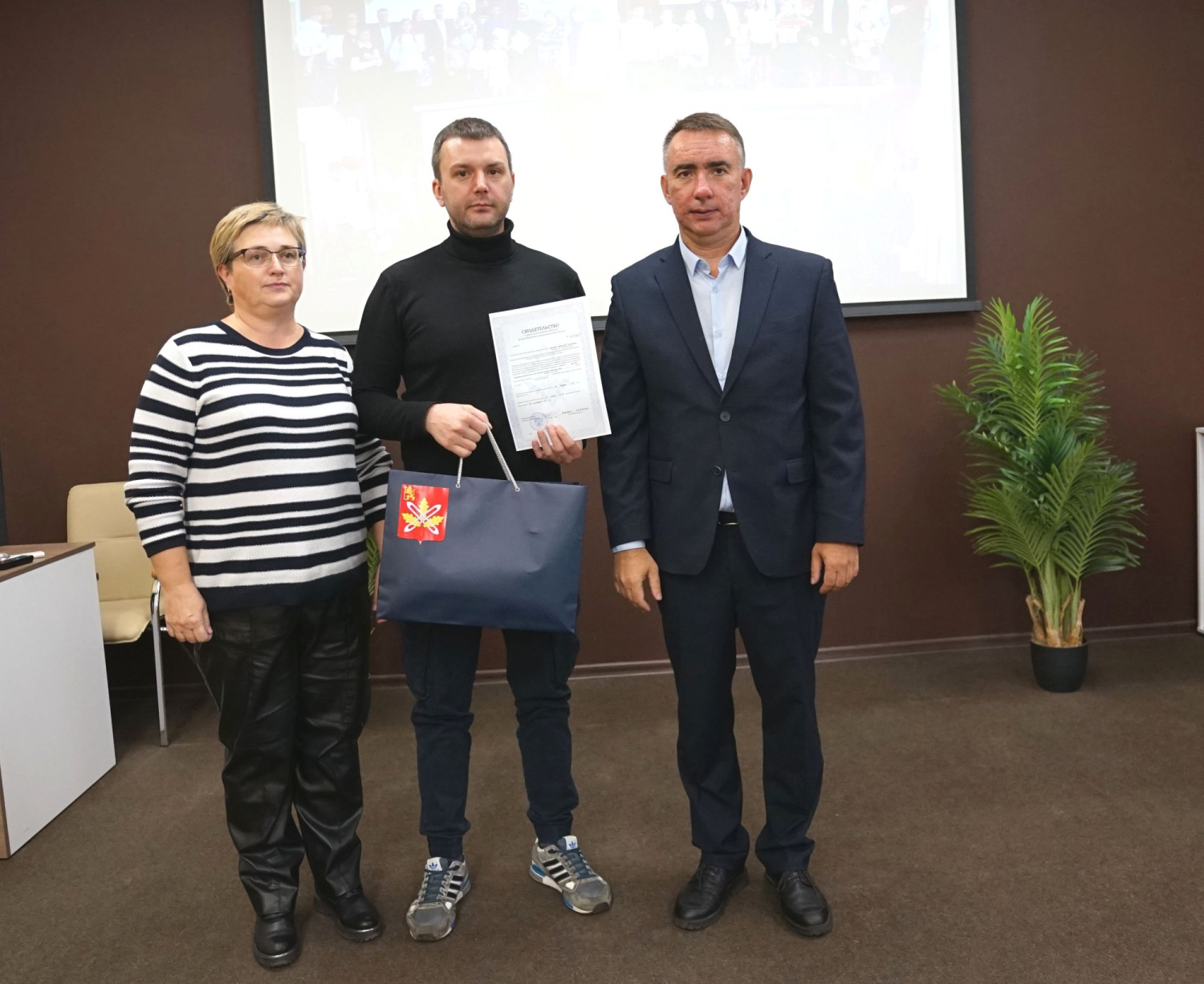 И вот настал самый волнительный момент. Под аплодисменты собравшихся и.о. главы администрации Петушинского района начал вручение сертификатов.