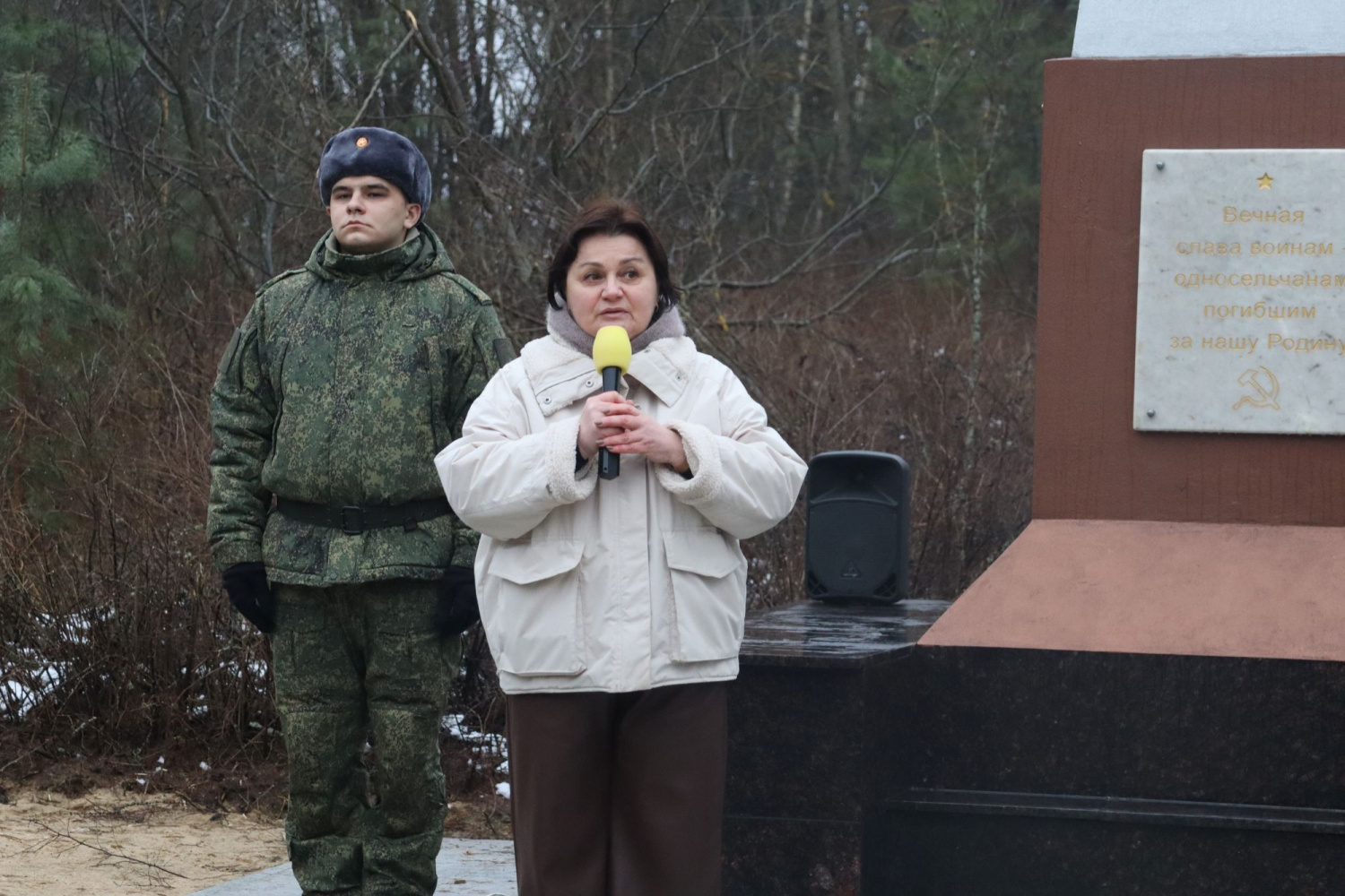Со стихотворения начала своё выступление на митинге Елена Володина, председатель Совета народных депутатов Петушинского муниципального округа, чья семья приняла активное участие в восстановлении обелиска. «Сохранение исторической памяти – это очень важно. Во славу наших воинов, которые прямо сейчас защищают рубежи нашей страны, во славу наших предков, которые отстаивали свободу и независимость нашей страны в разные исторические периоды, во славу наших отцов, дедов и прадедов, сокрушивших нацизм, дорогие ребята, вы должны чтить память и гордиться подвигом ваших предков», - обратилась Елена Константиновна к молодёжи.