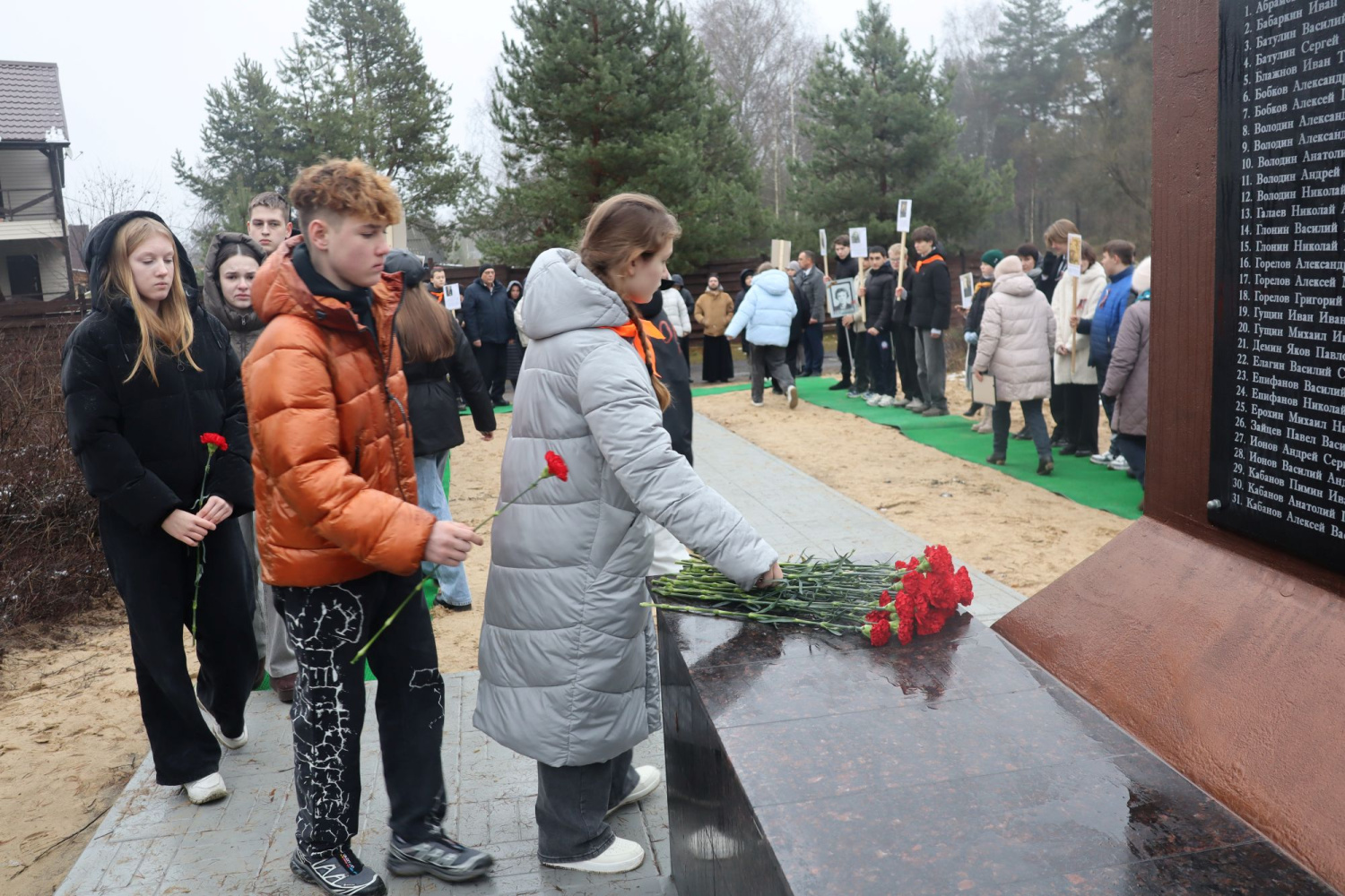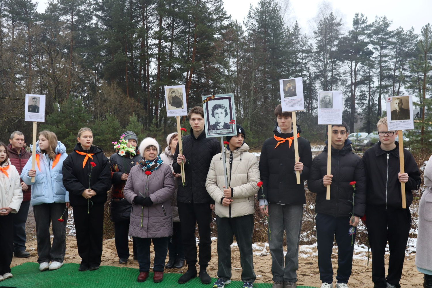 Состоялось возложение цветов к обелиску, а затем участники объединились для памятного фото.