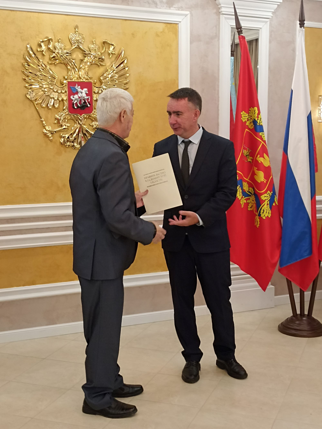 А после началась церемония награждения. Почётной грамотой Правительства Владимирской области за высокий профессионализм и в связи с 65-ти летием со дня рождения награждён Владимир Багдагулянц - электромонтер по эксплуатации распределительных сетей четвертого разряда участка эксплуатации и ремонта распределительных сетей производственного отделения города Петушки района электрических сетей "Западный" АО "Объединённые региональные электрические сети Владимирской области", Благодарственным письмом Губернатора Владимирской области А.А. Авдеева за успехи в профессиональной деятельности награждена Екатерина Аксёнова - начальник Отдела наградной политики управления делами главы администрации Петушинского района;