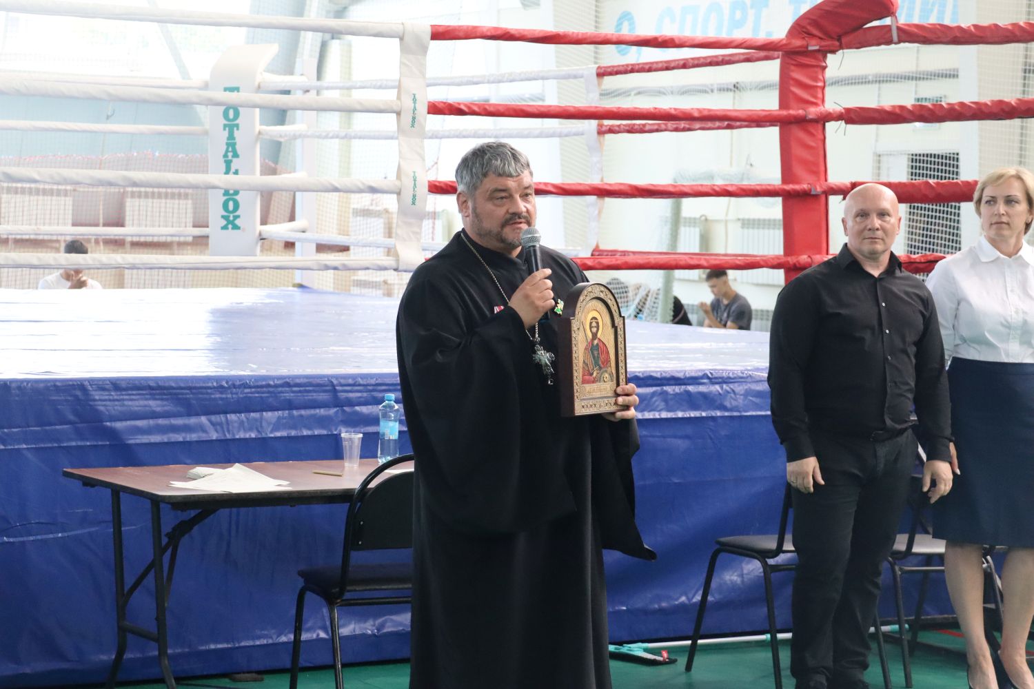Протоиерей Александр Столяров, настоятель Свято-Введенского храма, руководитель школы бокса г. Вязники, привез на турнир своих воспитанников. Кроме того, он выполняет важное поручение: «От имени наших архипастырей – митрополита Никандра и епископа Муромского и Вязниковского Нила мы с собой возим икону Святого князя Александра Невского с мощами, благословляем каждое мероприятие. Мы несём духовную культуру, соблюдая свои традиции, исторические корни христианские, пытаемся всё это молодёжи прививать. Мы ставим своей целью работу духовную, нравственную с нашей молодёжью, готовить патриотов к защите родине, защите своего Отечества, - рассказал отец Александр. – Задам вопрос: любит ли Бог бокс? И отвечу: Бог любит воинов, Бог любит бойцов. У нас богатая история – очень много христиан, которые защищали своё Отечество. Мы стараемся никогда не забывать об этом. Будем помнить свою историю, культуру, хранить свои духовные ценности и не забывать тех, кто защищает нас, быть благодарными тем, кто создаёт нам условия для занятий спортом – прекрасные залы, комплексы, центры, - администрации района, губернатору Владимирской области, всем причастным».